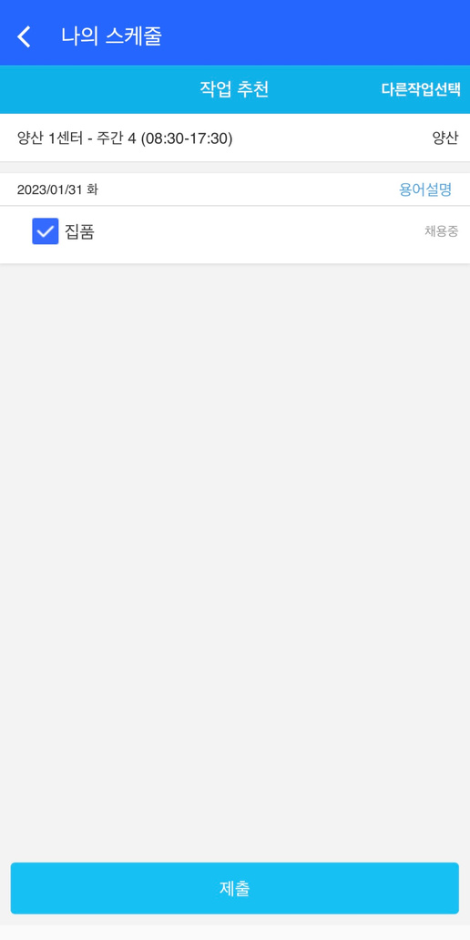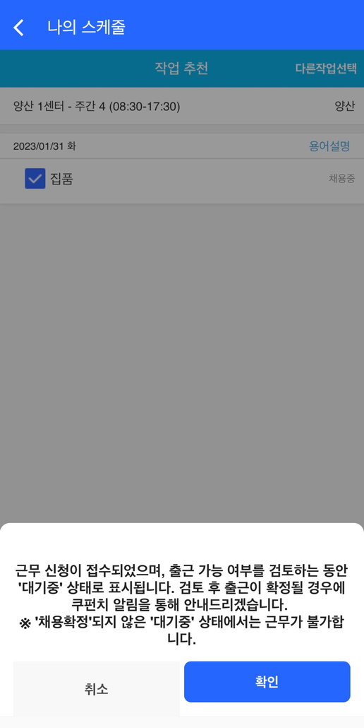 접수, 출근 확정, 마감은 문자로 안내드립니다.