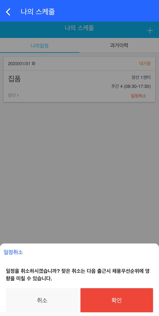 (취소 문자를 보내지 않을 경우, 무단결근 처리됩니다.)